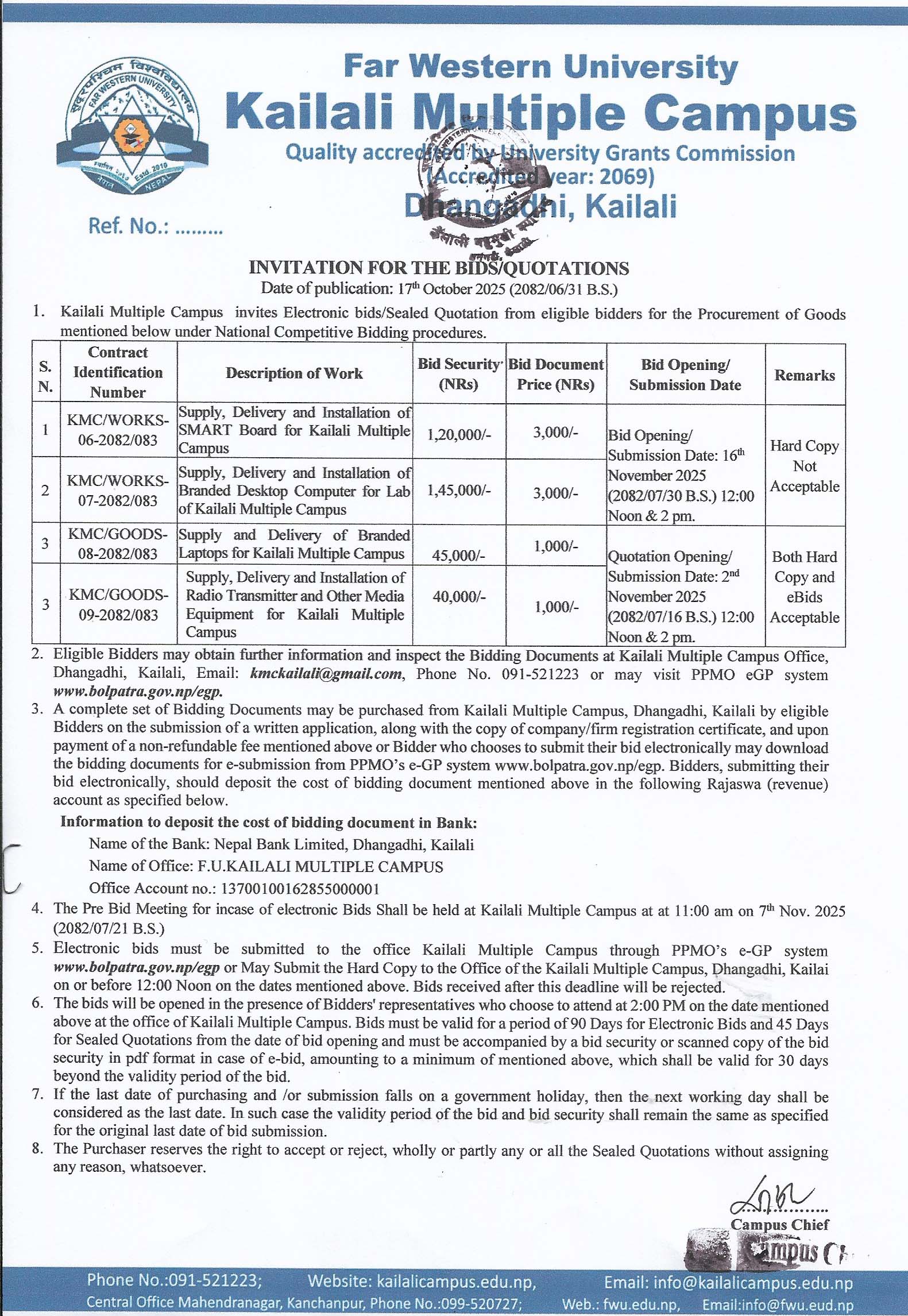 INVITATION FOR THE BIDS/SEALED QUOTATION