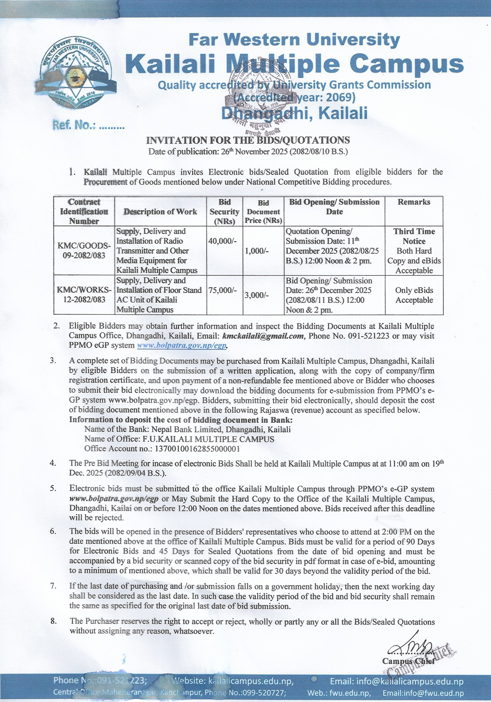 INVITATION FOR THE BIDS/QUOTATIONS